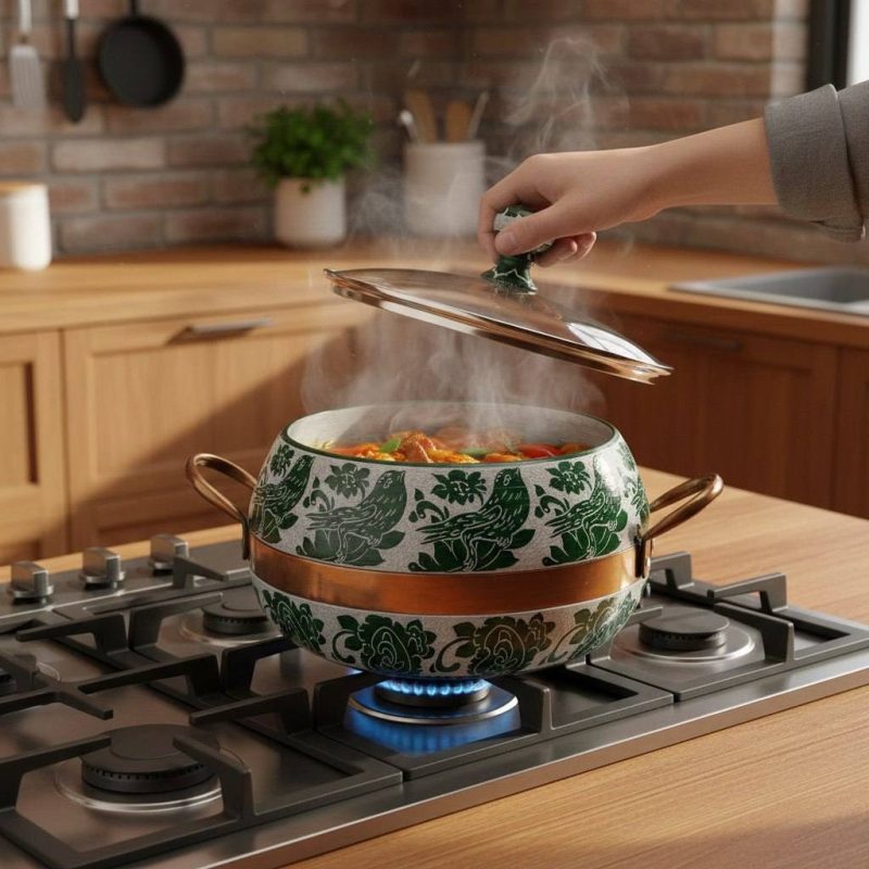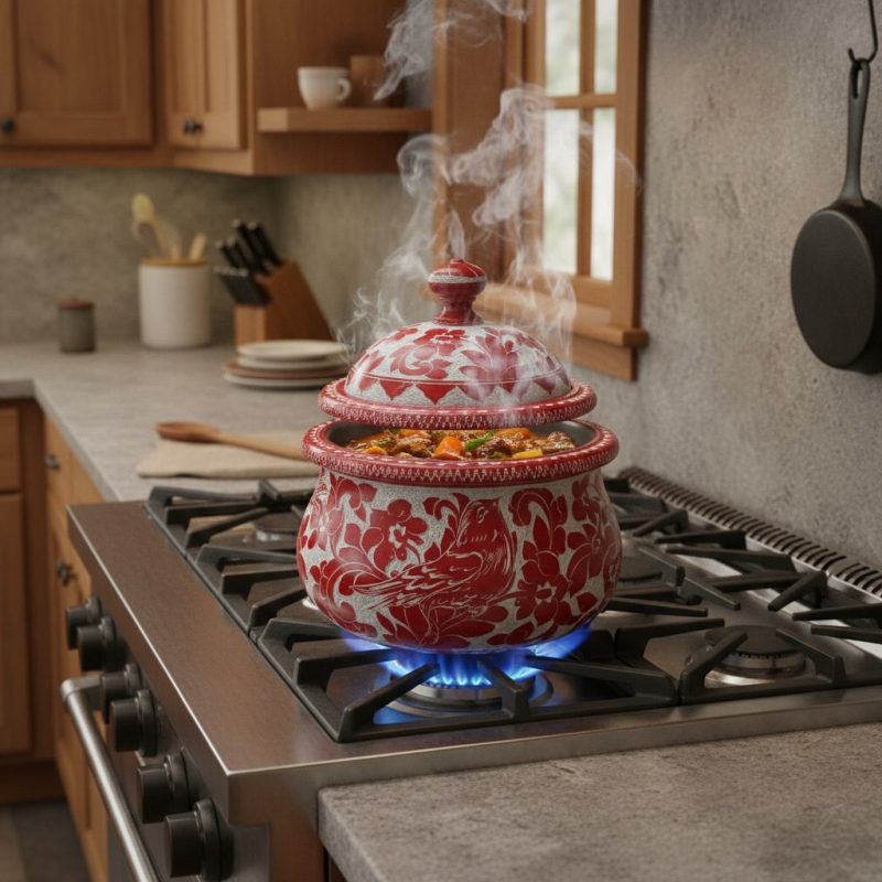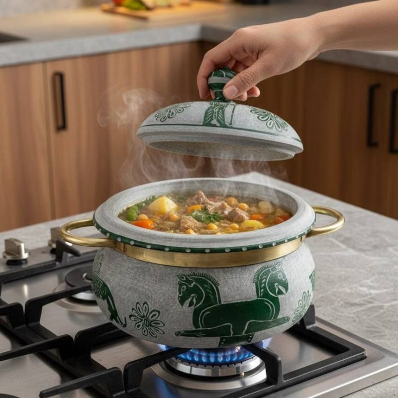 ست دیگ و تابه سنگی درباری طرح گلسنگ