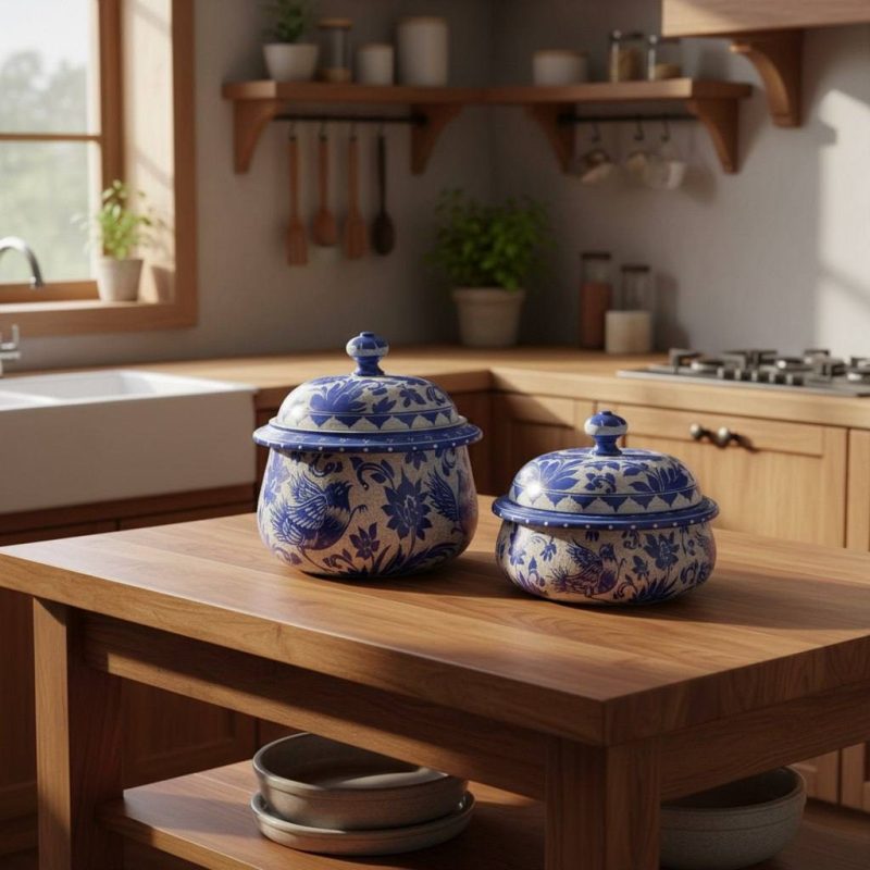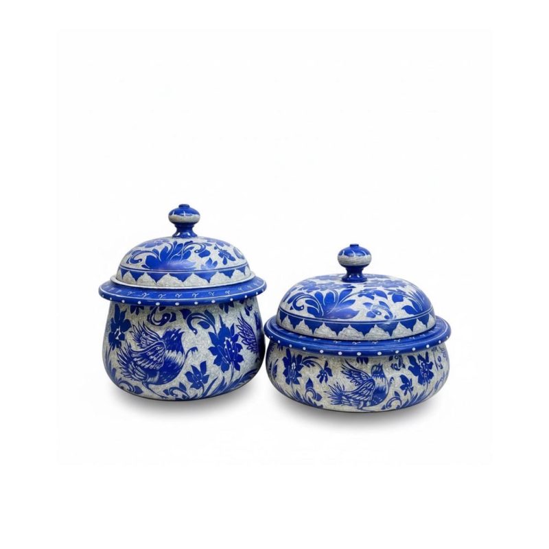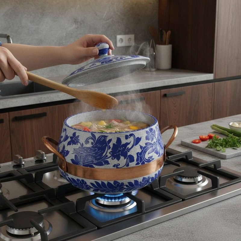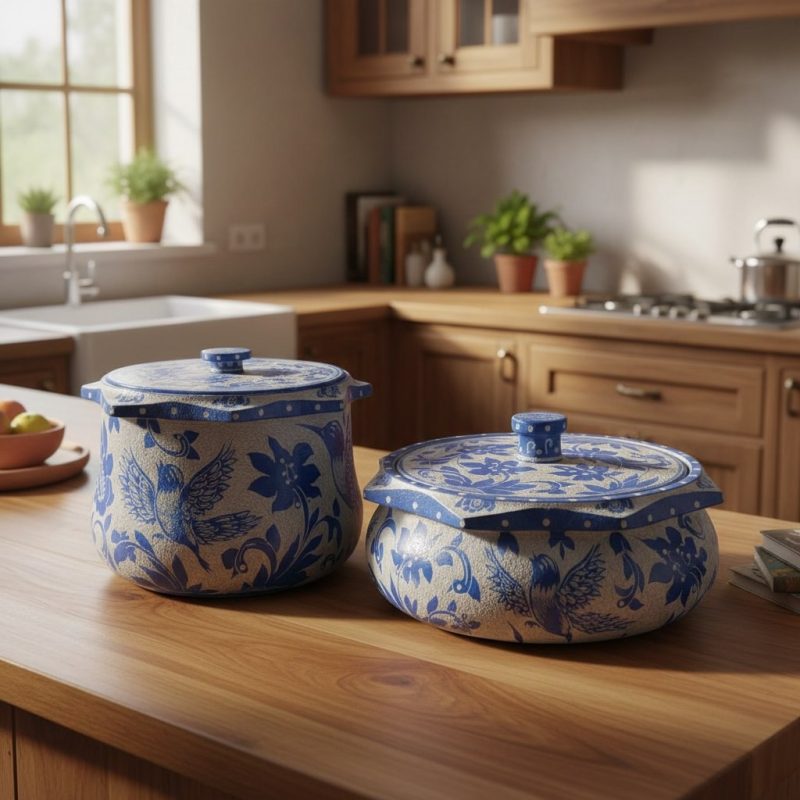ست دیگ و تابه سنگ ستاره ای طرح گل سنگ آبی