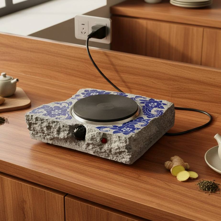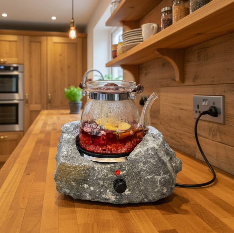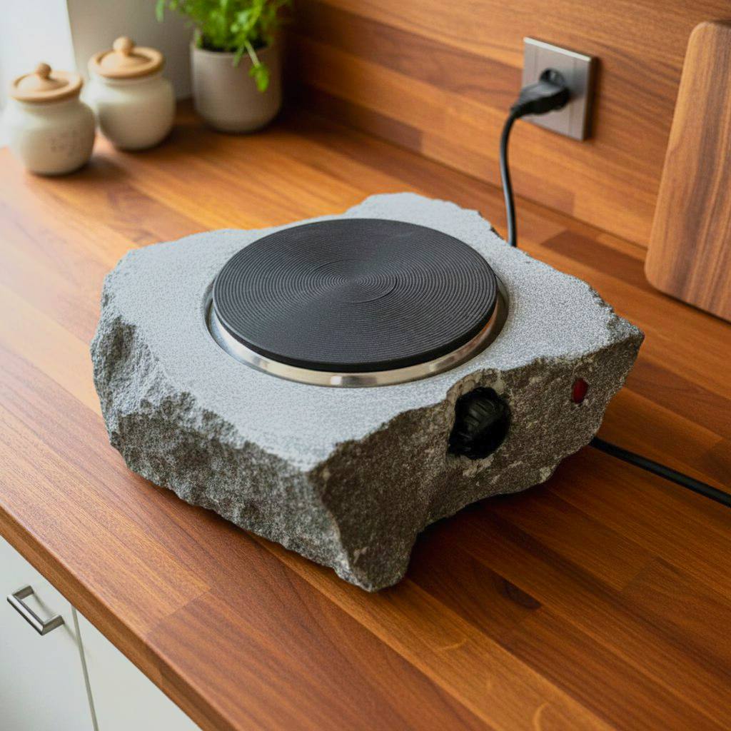 این اجاق سنگی با المنتهای دفورمه، ترکیبی از استحکام سنگ طبیعی و طراحی مدرن است.
