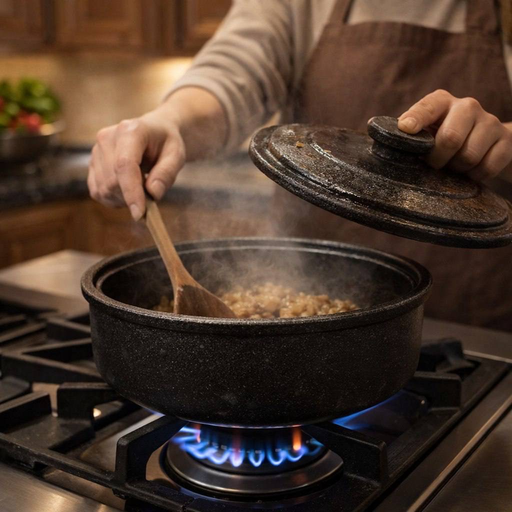 تابه سنگی با دسته برنج؛ یک انتخاب خاص برای آشپزی مدرن
