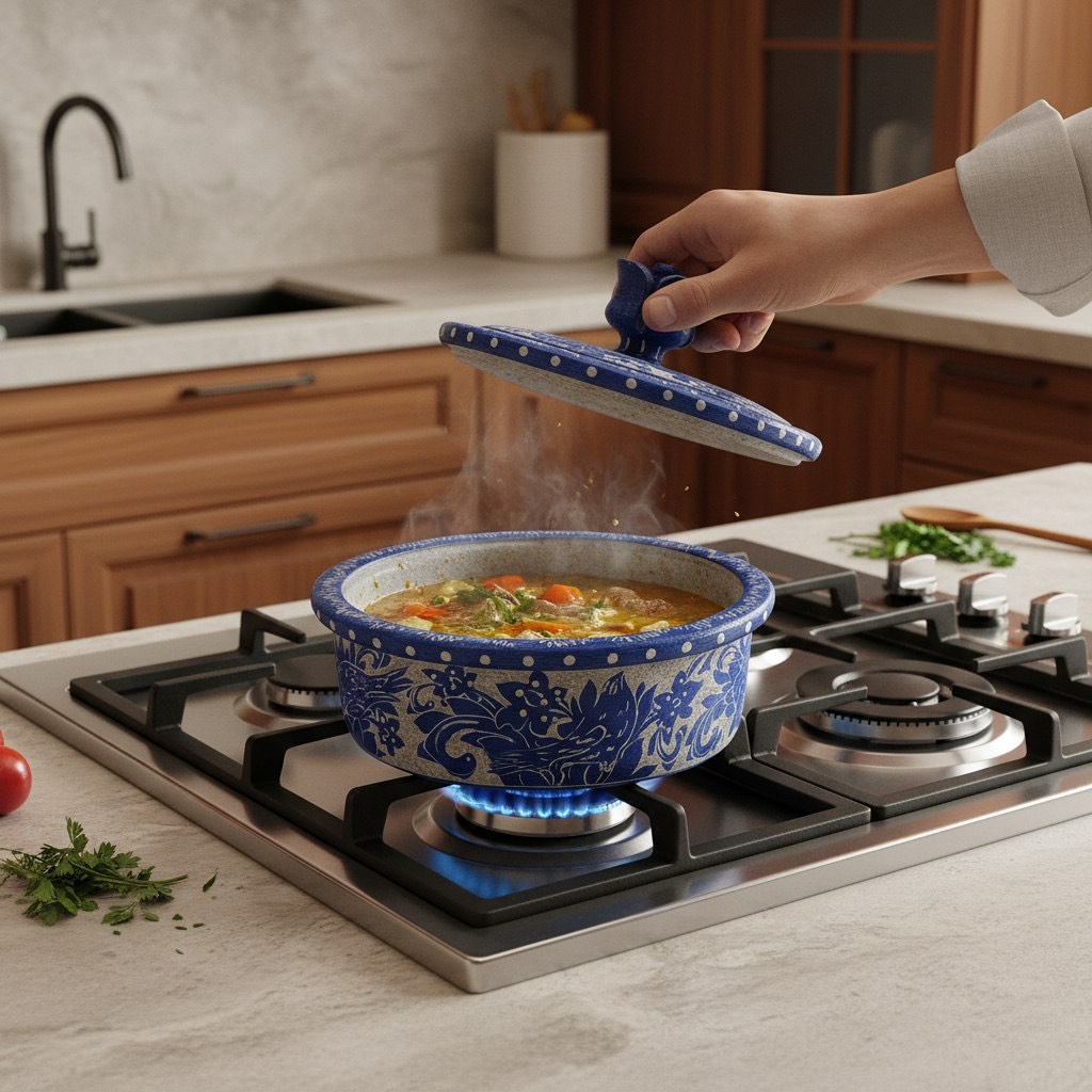 تابه سنگی از ظروف سنتی برای پخت و پز غذاهای ایرانی است که در این محصول ترکیب سنگ ، مس ، استیل و شیشه پیرکس، زیبایی این محصول را دو چندان کرده است. این ظروف از سنگی ساخته میشود که دارای مواد معدنی است که پخت و پز در این ظرف هم باعث لذیذتر شدن غذا و هم باعث غنی شدن مواد غذایی از آهن و منیزیم میشود، همچنین غذا در این ظرف به آرامی پخته میشود و هیچوقت نمیسوزد به همین دلیل خواص غذا به بهترین شکل ممکن حفظ میشود.