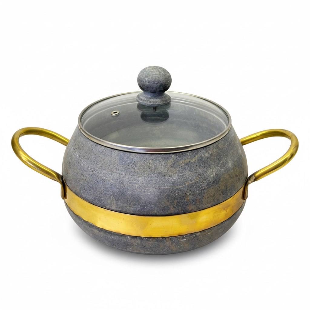 بدنهی سنگیِ این دیگ مثل مدلهای سنتی، گرما را یکنواخت پخش میکند و به غذا اجازه میدهد آرام و جاافتاده بپزد؛ اما اضافه شدن دستههای برنجی، آن را از یک دیگ کاملاً سنتی به یک انتخاب مدرنتر و شیکتر تبدیل کرده است.