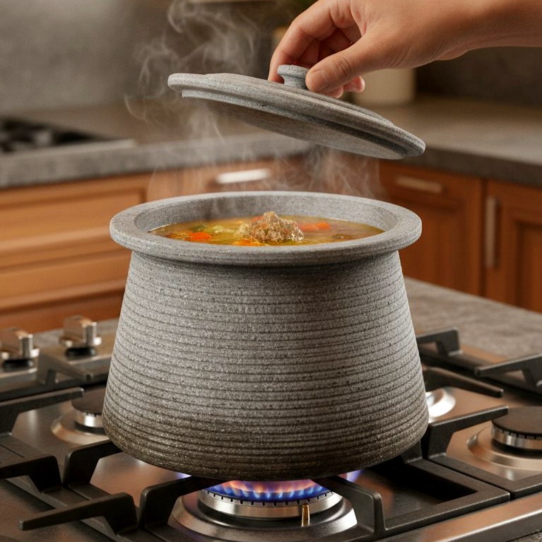 2- خواص ظروف سنگی برای آشپزی:طعم و مزه غذای پخته شده در ظروف سنگی قابل مقایسه با سایر ظروف نیست و غذای طبخ شده در این ظروف بسیار خوش مزه و خوش طعم است. این به دلیل ماهیت سنگی بودن ظرف و تقسیم حرارت به صورت مساوی در ظرف پخت است.از دیگر نکات قابل توجه دیزی سنگی، تمیز ماندن داخل آن از چربی و باقیمانده غذا و شستشوی راحت ان است.