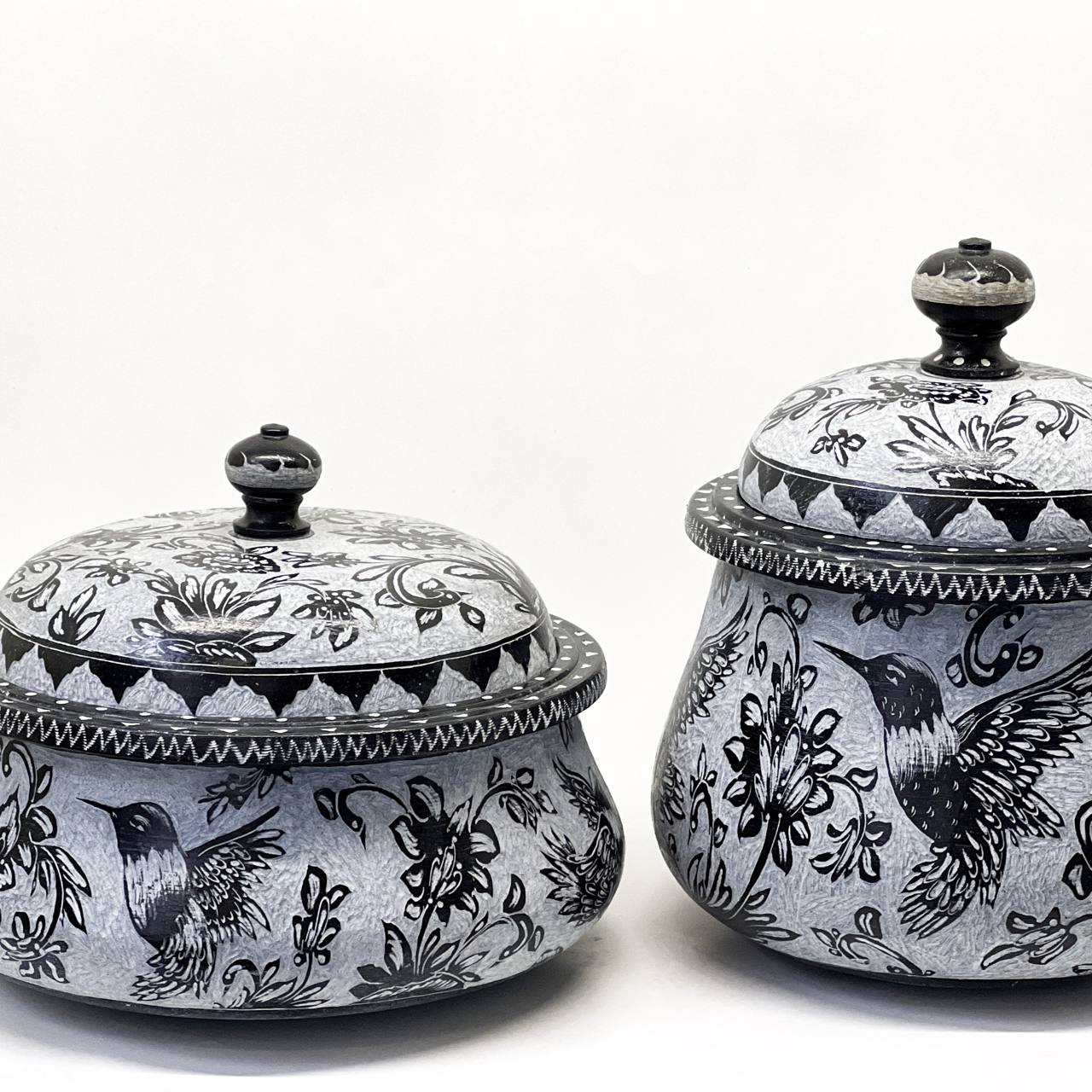 ست دیگ و تابه سنگی مدل درباری طرح ققنوس آبی یک انتخاب شیک و مناسب برای جهیزیه عروس یا یک هدیه خاص برای جشن تولدها، خانهٔ نو، جشن یلدا، جشن نامزدی و اعیاد مذهبی است. این محصول با پخش یکنواخت حرارت، غذا را کاملاً مغزپخت میکند و علاوه بر حفظ طعم واقعی غذا، آشپزی سالمتری را نیز برای شما به ارمغان میآورد. درتابه و دیگ قوسی وجود دارد که زیبایی کار را دوچندان میکند. طرح قلمزنی دیگسنگی و تابهسنگی، طرح ققنوس (ققنوس پرندهای افسانهای است که از خاکستر خود دوباره زاده میشود و نماد جاودانگی است) به رنگ آبی است. این محصول بادوام و باکیفیت جلوهی خاصی به آشپزخانه شما میبخشدحتی زمانی که ست دیگ و تابه سنگ مدل درباری طرح ققنوس آبی را روی اجاق قرار دهید، آشپزخانهی شما شیکتر به نظر میرسد.