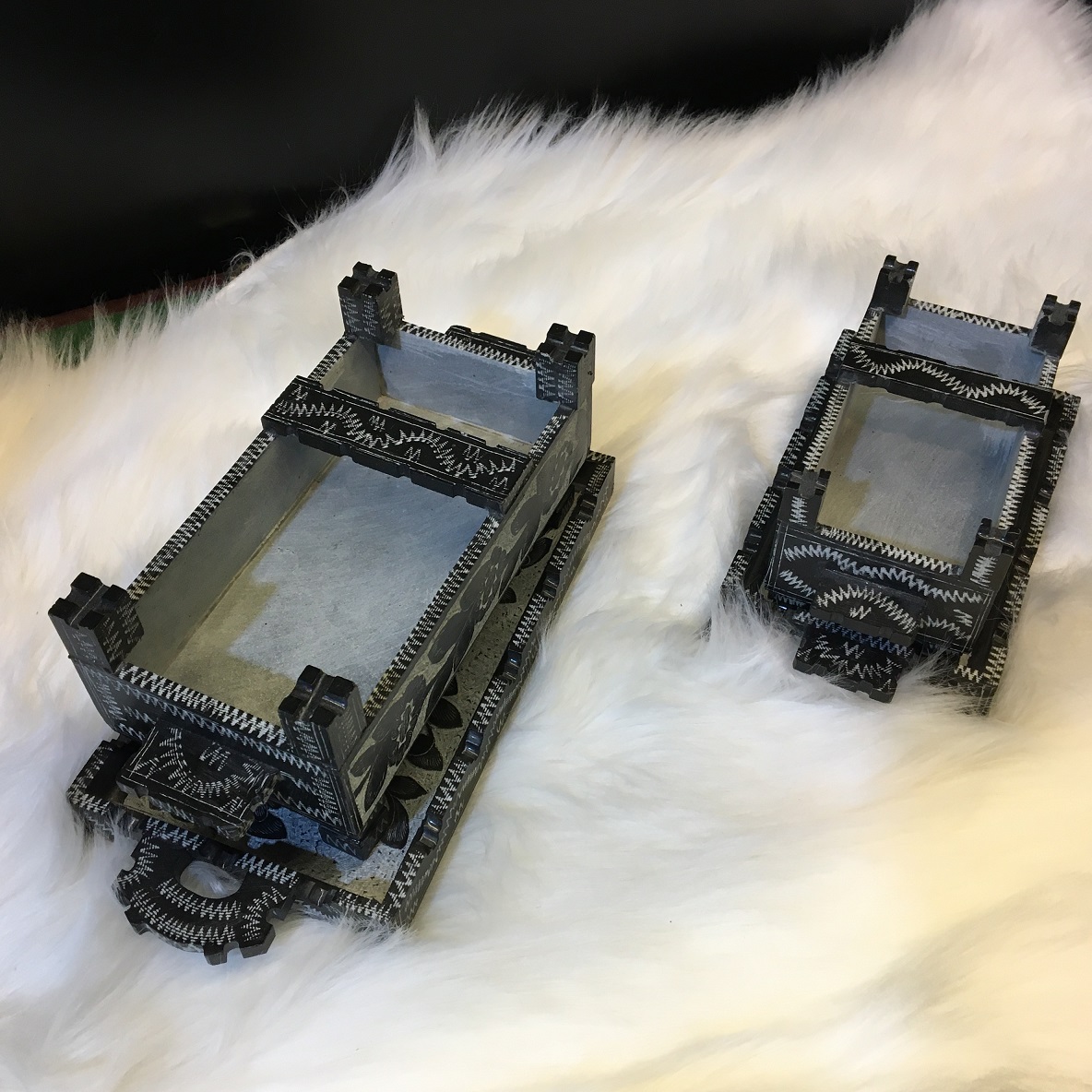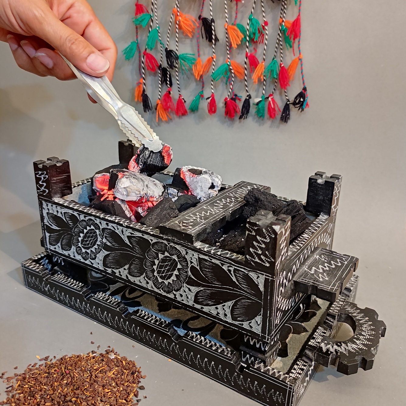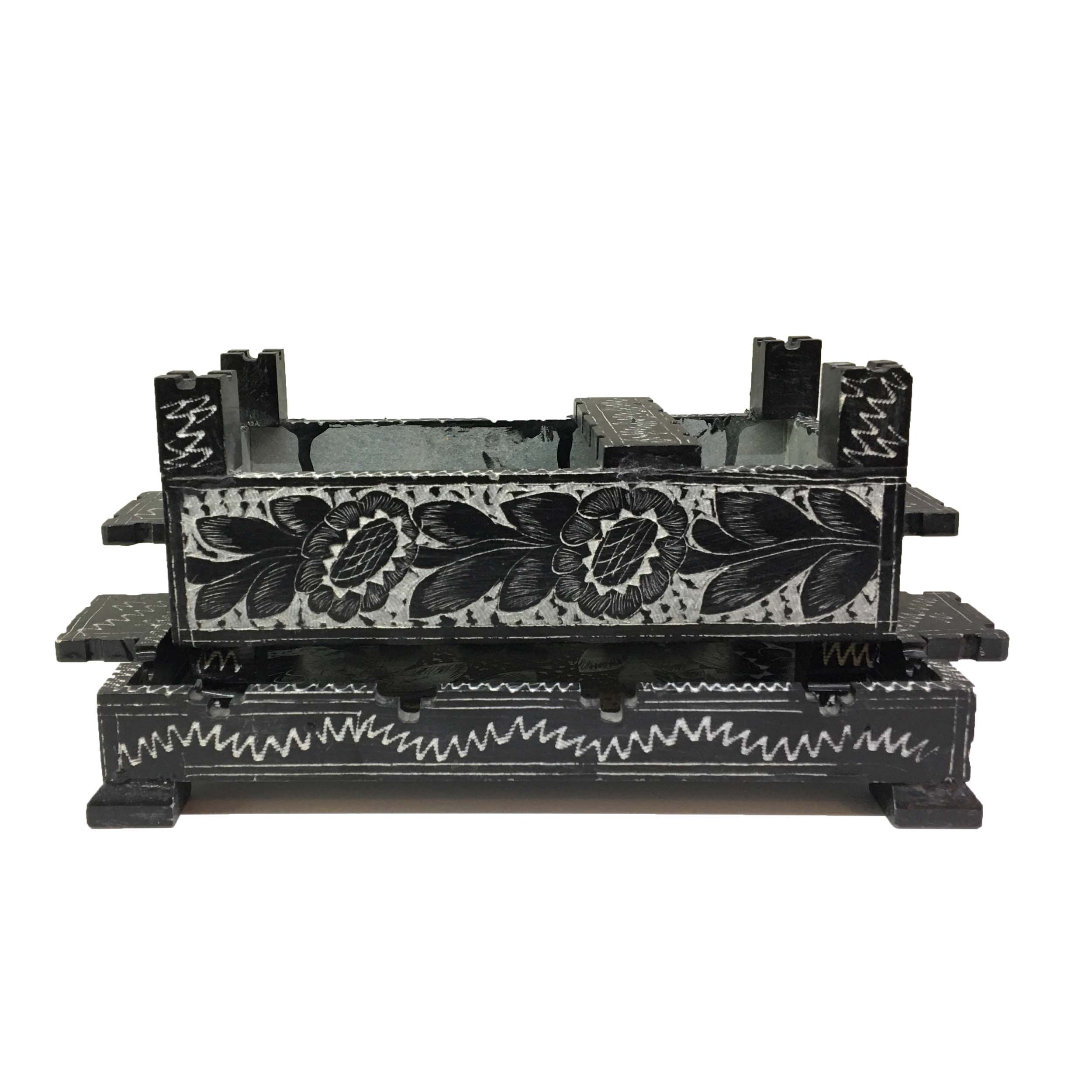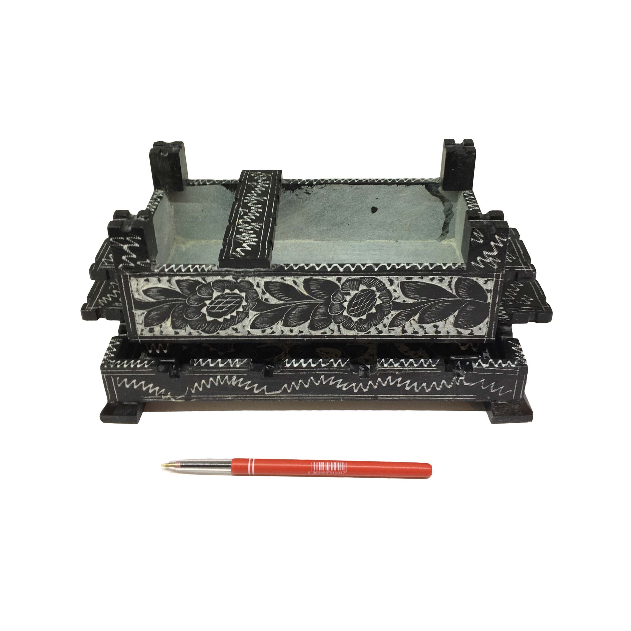 این محصول بدون قالب و طرح ریزی به صورت دستی تراشیده است و طرح سیاه قلم آن نیز با دست بدون دخالت ماشین طراحی شده که یک اثر کاملا هنری است.