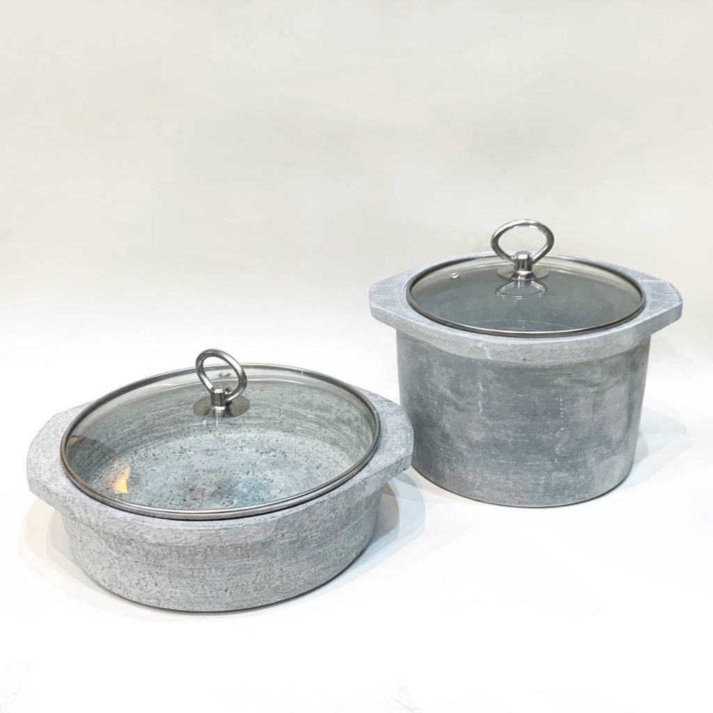 ست دیگ سنگی و تابه سنگی با دسته آهنی